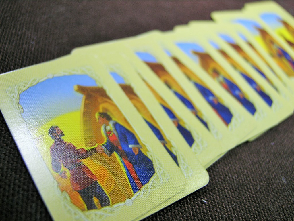 ◎發給每位玩家4張交易卡,剩餘的卡置於一旁備用。
